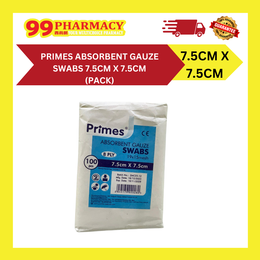 Being latex-free minimizes the risk of allergic reactions, making them ideal for general wound cleaning, padding, and absorbing blood or exudates. The convenient 7.5cm x 7.5cm size offers versatility for various wound types. Trust PRIMES for reliable and safe wound management.